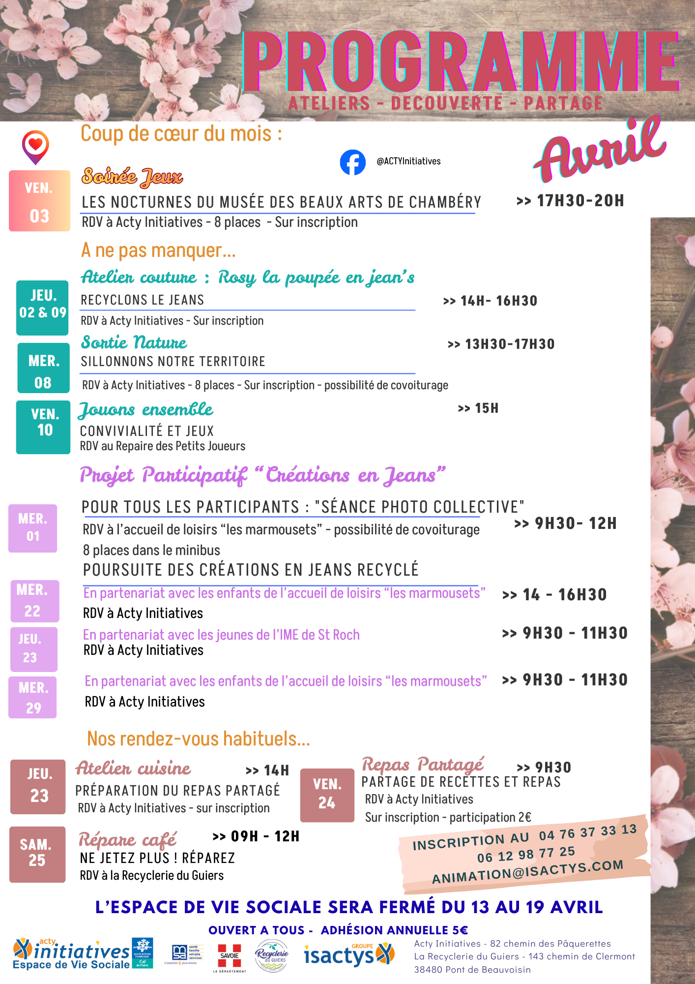 Découvrez le programme du mois d’avril 2026 qui va nous émerveiller. Ouvert à tous : activités, sorties et ateliers dans une ambiance conviviale et festive.